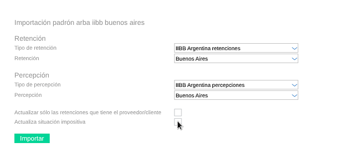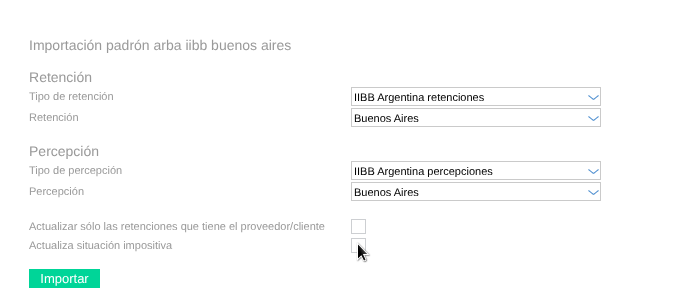 Al realizar la importación de padrones de ARBA o CABA , encontrará una nueva opción denominada “Actualiza situación impositiva”.