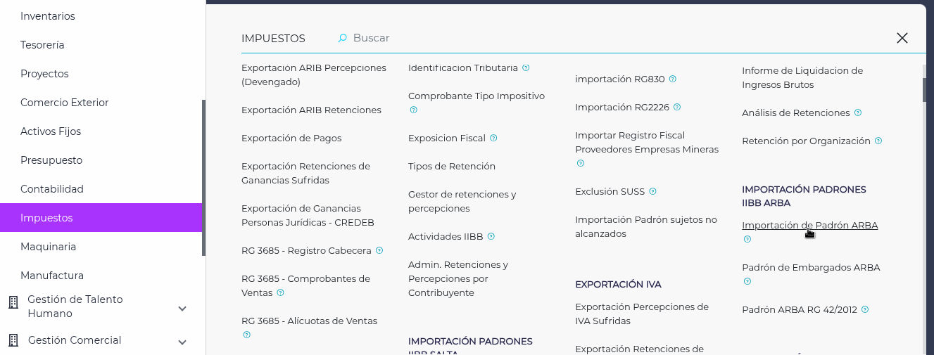- Ubicación: Se encuentra en las pantallas de “Importación de Padrón ARBA” e “1º Importación Padrón RG IIBB CABA”