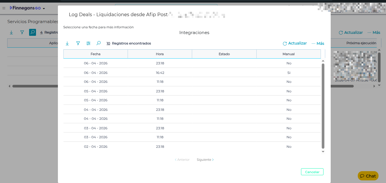 - Una vez que el servicio esté operativo con la nueva clave, el sistema comenzará a traer las liquidaciones disponibles.