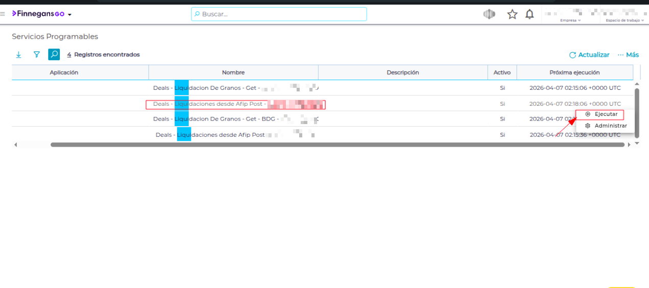 Ruta: Servicios Programables–> Liquidaciones → Ejecutar.