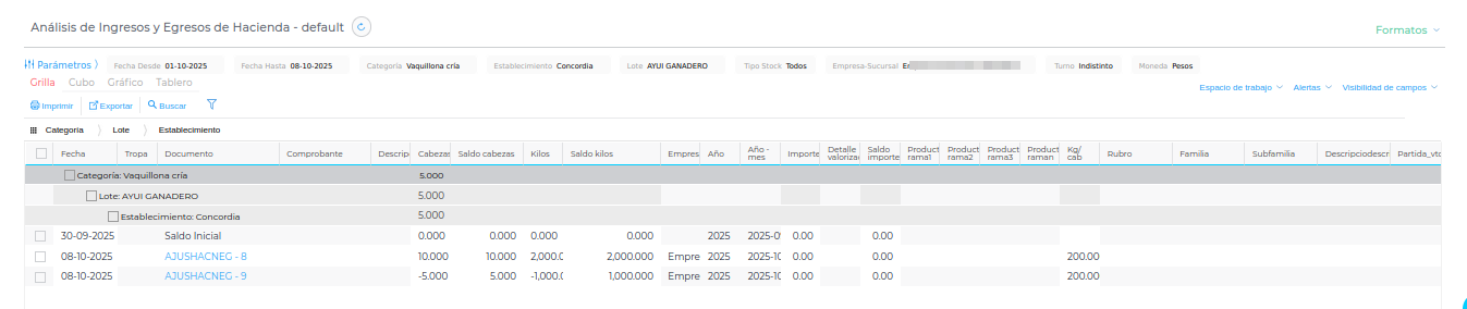 Esto asegura que, al revisar un análisis de ingresos de hacienda, el movimiento se registre correctamente como un descuento de cabezas y no como un ingreso.