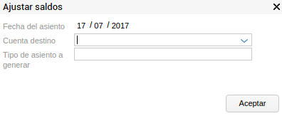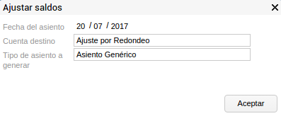 Cuenta destino: permite seleccionar entre las cuentas contables. Se debe ingresar la cuenta para el ajuste.