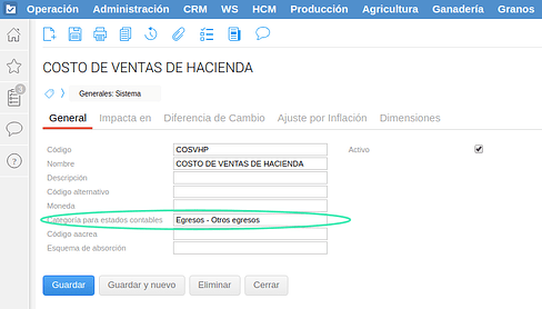 Egreso: Sumatoria de los importes de las cuentas contables con “Categoría para estados contables”que pertenezcan al rubro “Egresos” con distribución de centro de costos correspondiente a la combinación de Establecimiento/Actividad/Campaña para el periodo de fechas seleccionado