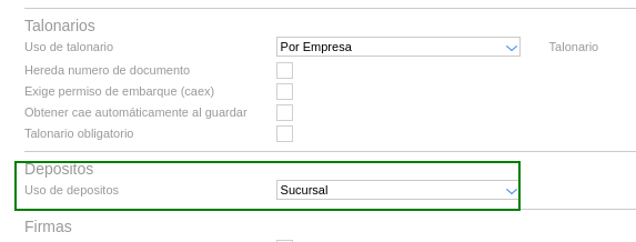 En la solapa “General” del documento, tiene definido que usa depósitos por sucursal.