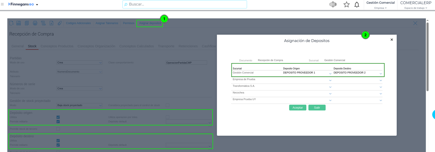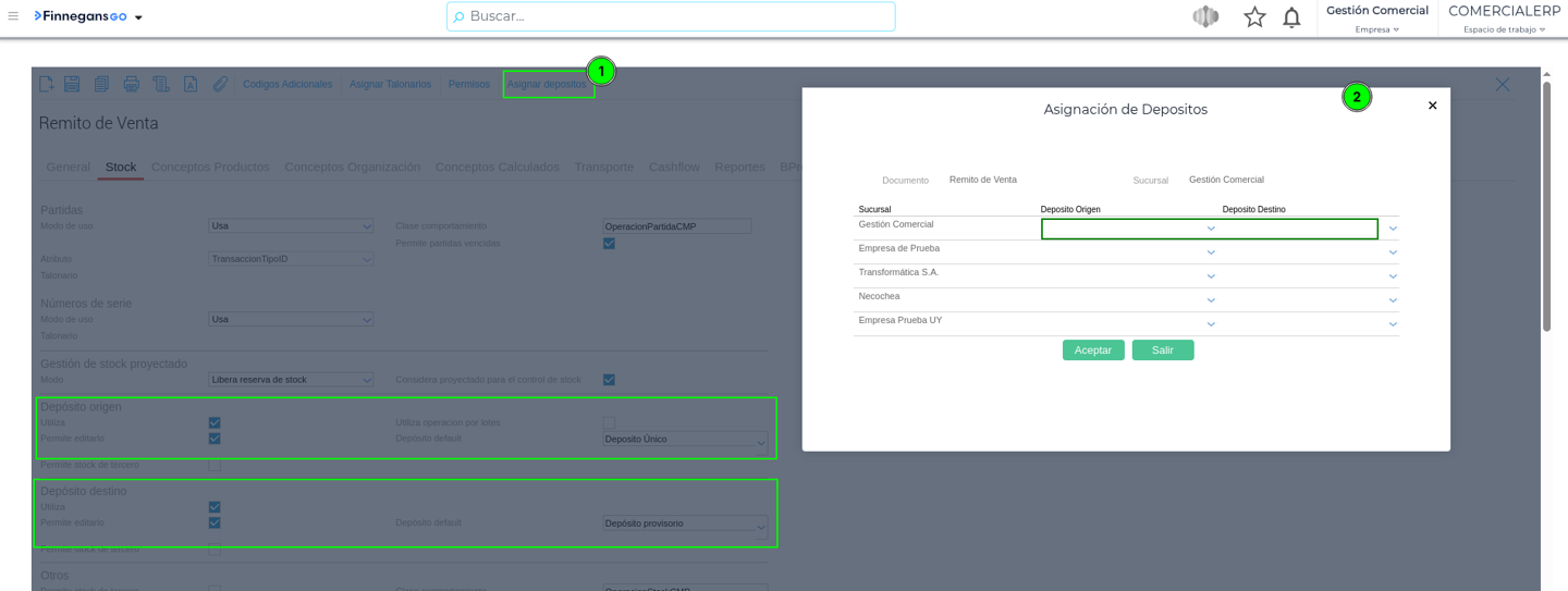 Tiene configurados depósitos en “Asignar depósitos”. En este ejemplo: