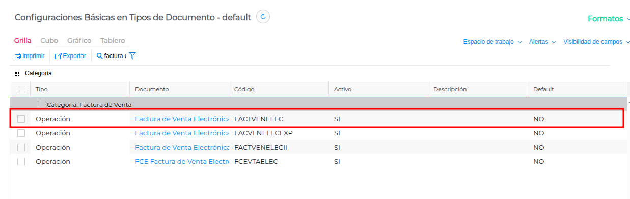 Menú > Configuración > Configuraciones Básicas de Tipos de Documento