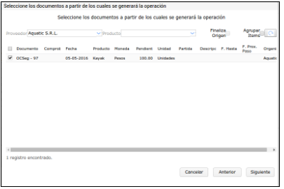 El documento Orden de Compra con Seguimiento debe tener configurado en el apartado Seguimiento el modo “por Proceso” y seleccionar el proceso con el cual se está trabajando.