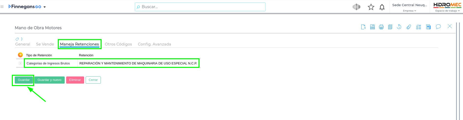 Respuesta: La causa de que el informe no muestre ningún registro se debe a dos configuraciones faltantes relacionadas con el tipo de retención Categorías de Ingresos Brutos: