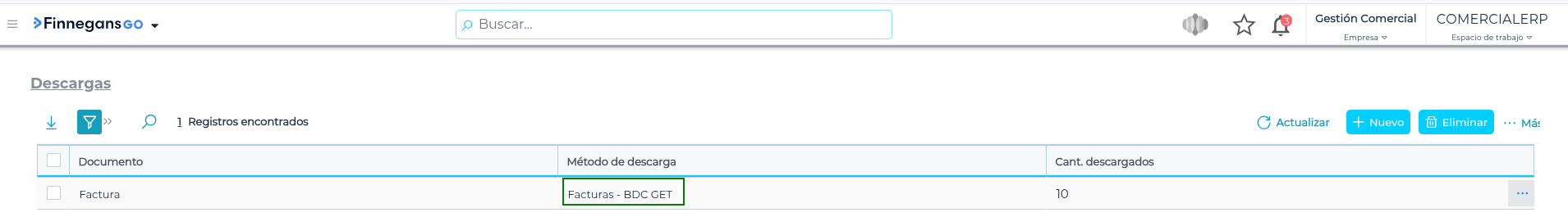 Ingresar al Método de descarga “Facturas - BDC - GET” del documento “Factura” y en la solapa “Orígenes Permitidos” habilitar el método de origen “publicarFactura” el cual se configuro en el paso 1 y 2: