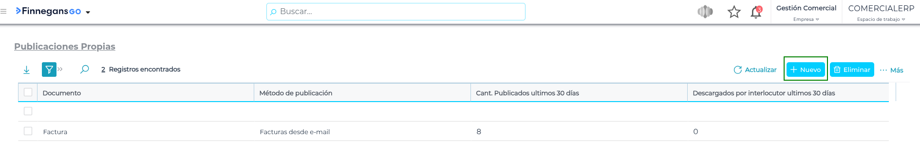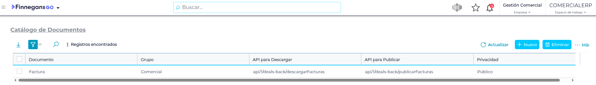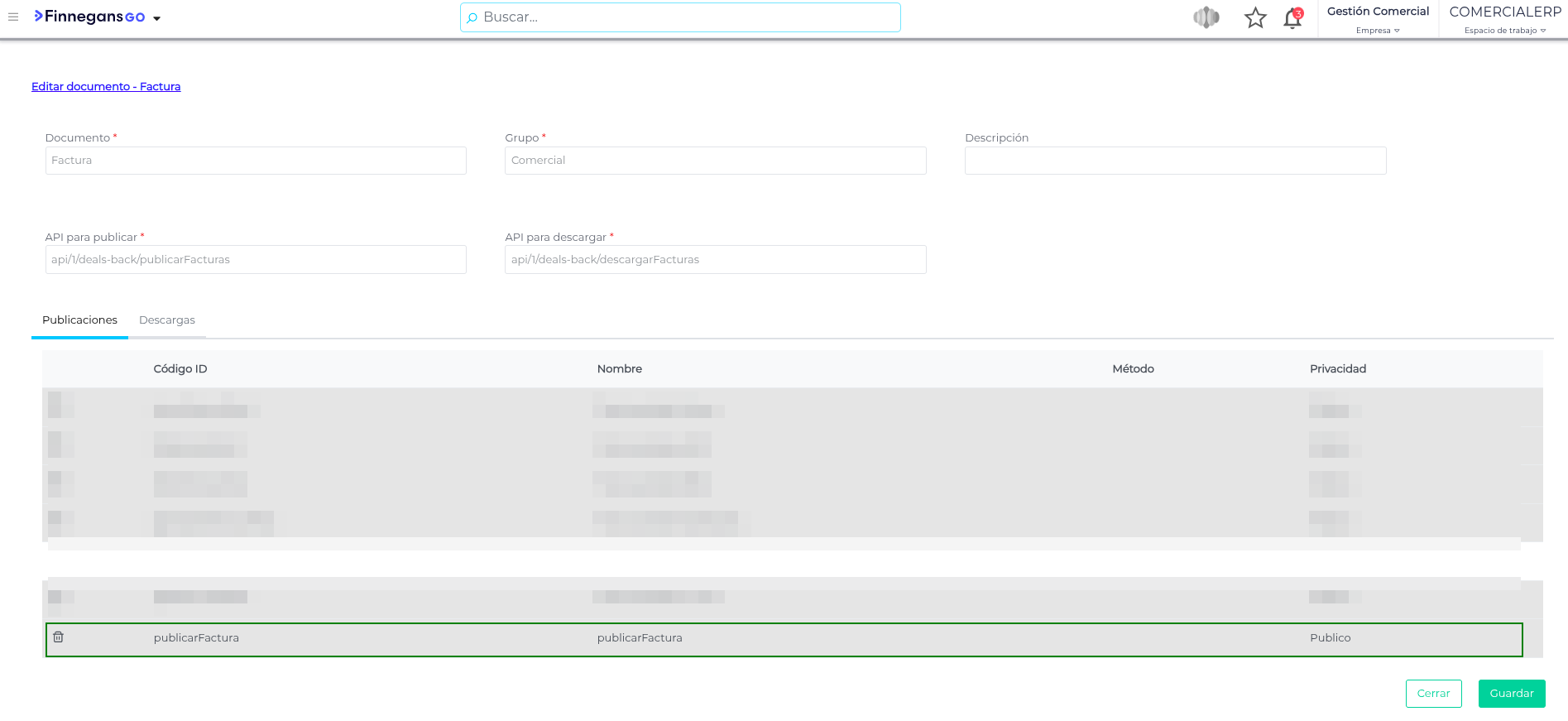 Ahora, este método de publicación es necesario configurarlo en las Publicaciones y Descargas del documento publico “Factura” dentro de Deals. Seguir estos pasos: