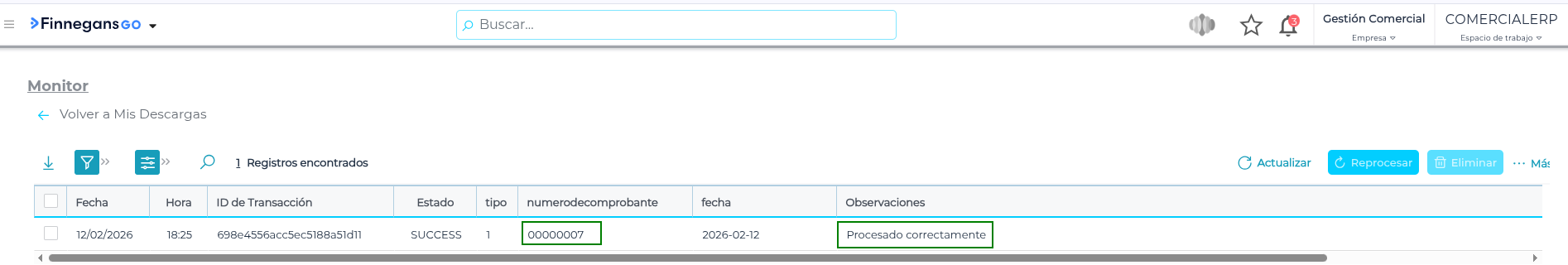Se visualiza que la Factura se procesos correcamente en Deals: