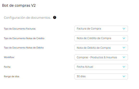 Si el único origen activo es AFIP, por default la aplicación descargará todas las facturas de proveedores con ese origen, y NO deberán configurar nada en esta sección.