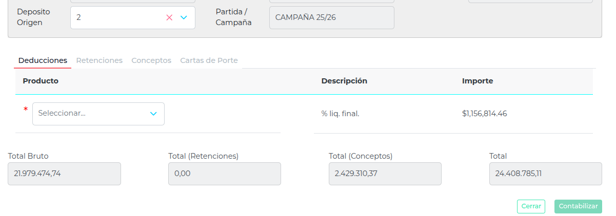 d. Después de completar todos los datos se hace click en el botón “Contabilizar” para enviar la liquidación al ERP: