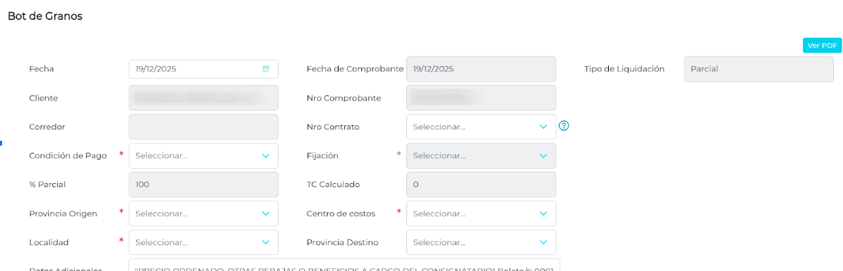Certificando la mercadería a liquidar, y teniendo bien configurados los códigos en el maestro de Localidades ( Configurar códigos de localidades/provincias ), el bot completará los datos correctamente