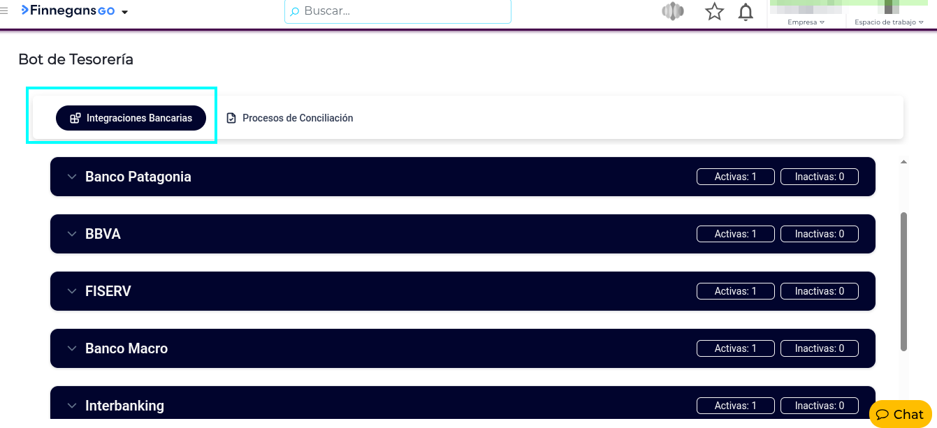 El Bot de Tesorería es una nueva aplicación diseñada para simplificar las tareas de tesorería y la conexión entre tus bancos y nuestro sistema. Su beneficio principal actualmente es permitirte activar y gestionar de manera rápida cómo se recibe y registra la información bancaria, ahorrando tiempo y evitando errores de carga manual.