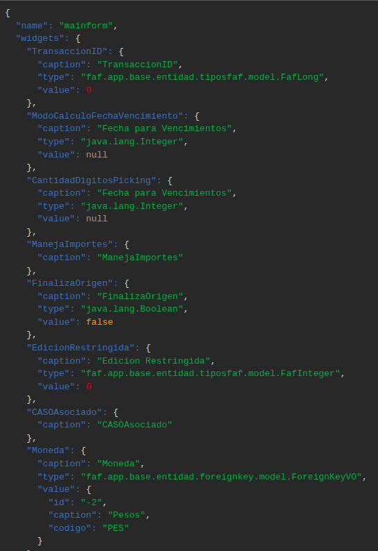 Al disparar el evento se ejecuta el script, el cual obtiene el json con el formulario de la transacción, necesario para que el script pueda realizar los cambios configurados en el.