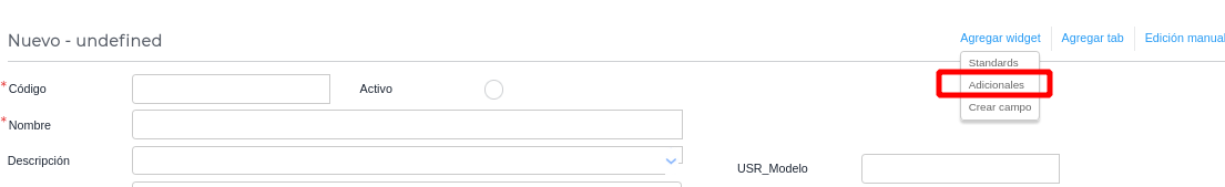 Agregar widget en la sección Adicionales,