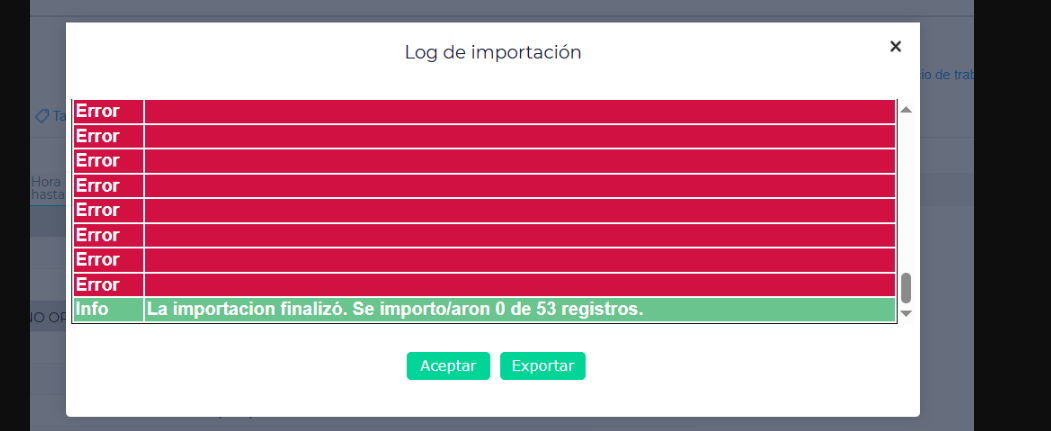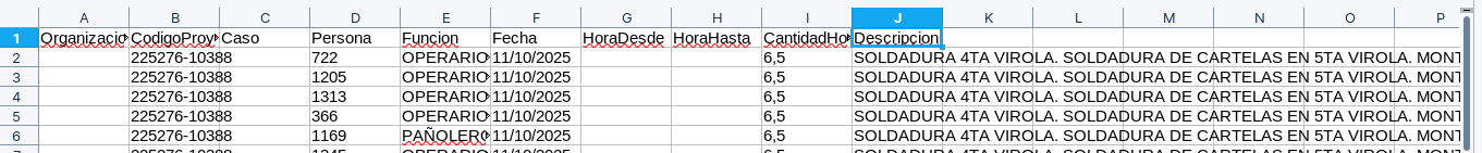 - Revisar el archivo de carga masiva de horas antes de importarlo.