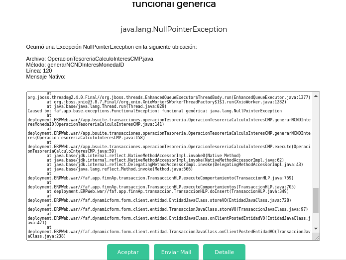 Ocurrió una Excepción NullPointerException en la siguiente ubicación: