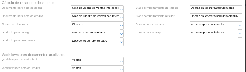 Verificar la configuración detallada de esta sección según la entrada de configuración general de Recargos/Intereses. (Aquí se puede dejar el espacio o un enlace a la entrada complementaria una vez que se cree: