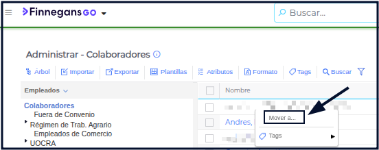 Presionar clic derecho en el colaborador deseado y presionar “mover a…”.
