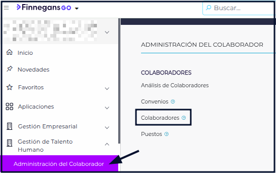 Ingresar al menú > Gestión de Talento Humano > Administración de Colaborador > Colaboradores.
