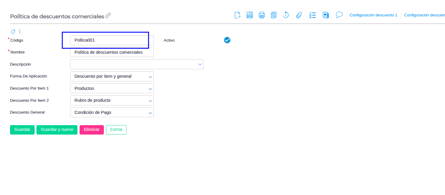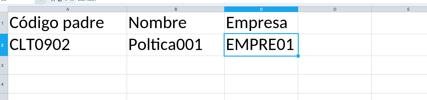 Codigo Padre: es el codigo del clienteNombre: Ingresamos el codigo de la politica que le queremos asignar