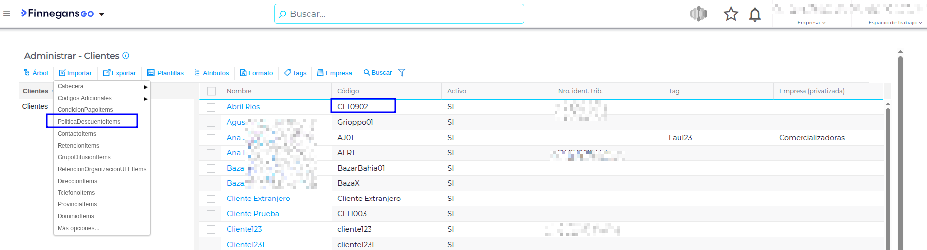 Se requiere realizar la asignación de políticas de descuento a múltiples clientes de forma masiva para evitar la carga individual en la ficha de cada entidad.