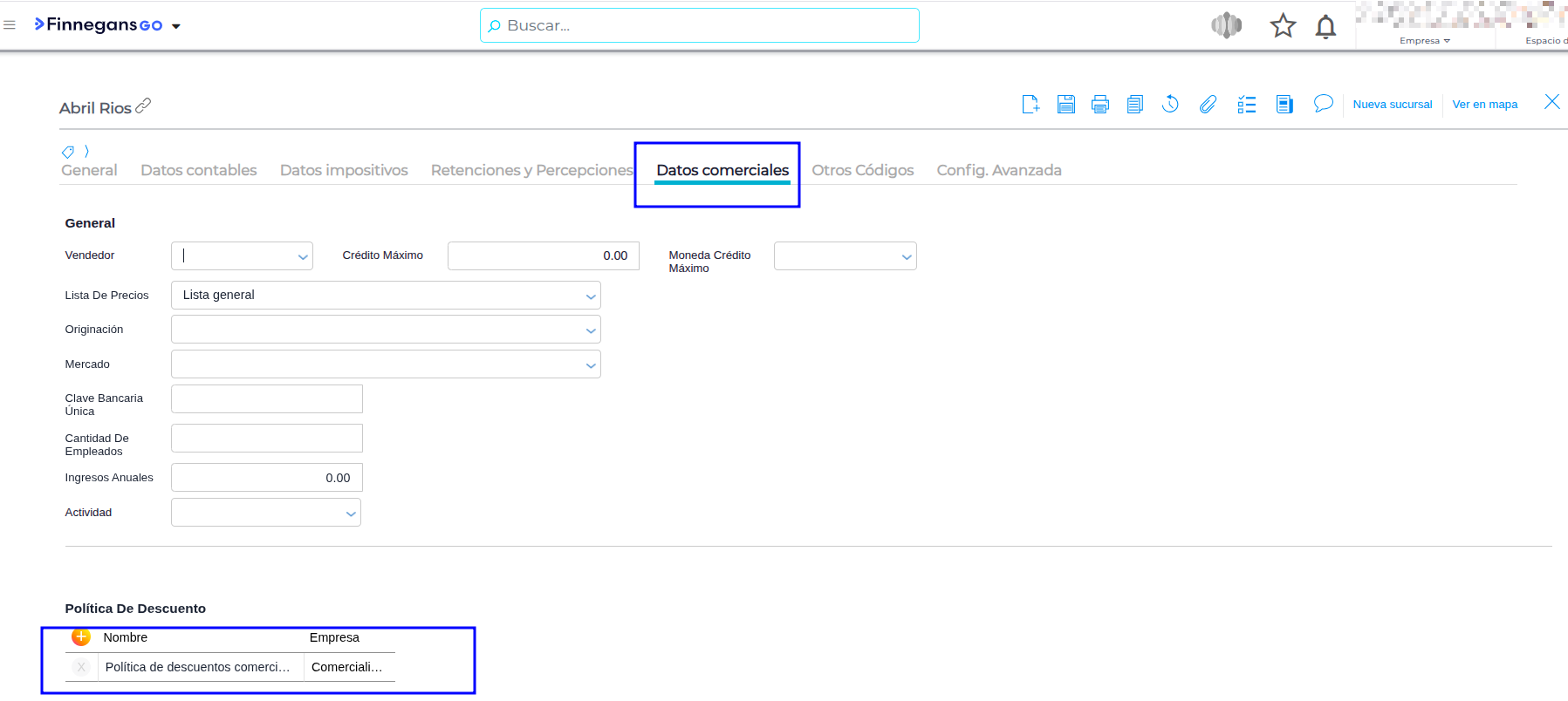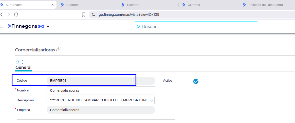 Empresa: colocamos el codigo de la sucursal(nuestra) a la que va a estar asociada esa politica y cliente -