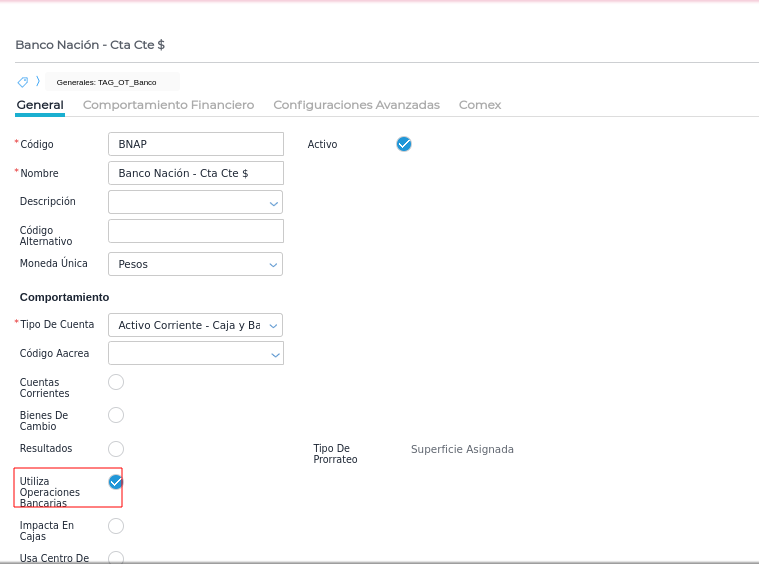 Cuentas (activar ‘Utiliza operaciones bancarias’ y configurar el ‘Código Datanet’ de la cuenta)