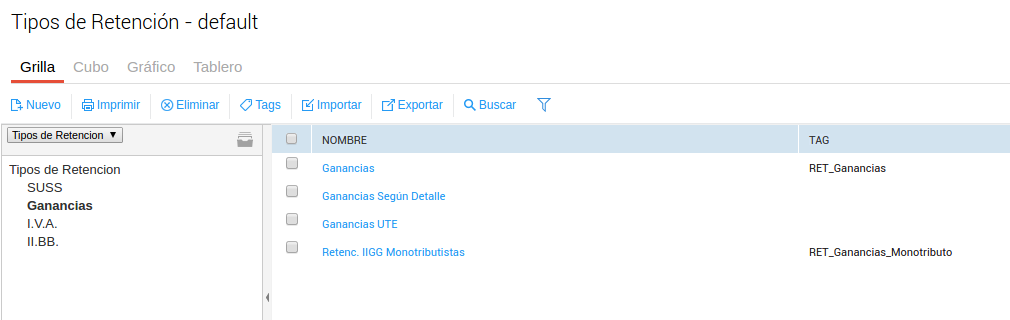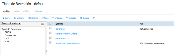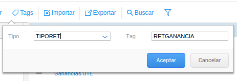 Al mismo tiempo, se debe identificar la Retención de Ganancias con un Tag, para que el sistema la identifique e indique en la Exportación, el código asignado a la Categoría Fiscal cuando se trate de una Retención de Ganancias.