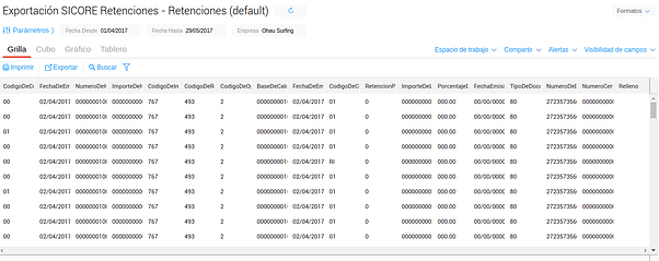 Este es el archivo que se deberá importar en el Aplicativo SICORE de la AFIP.