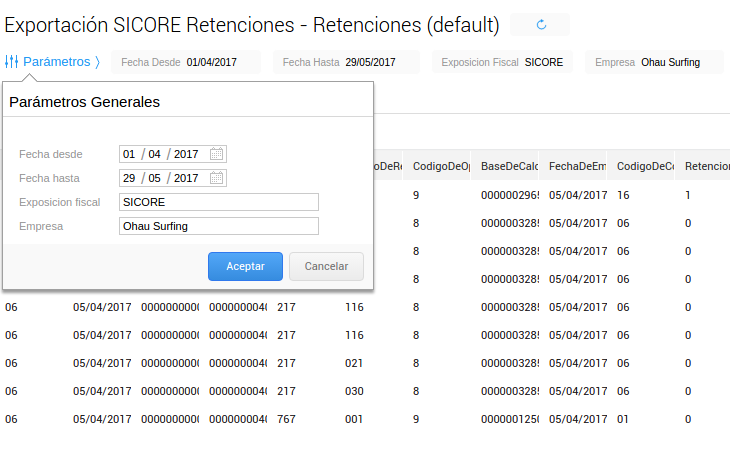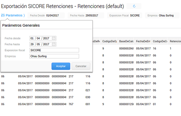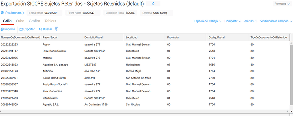 Existen dos vistas: Exportación SICORE y Exportación SICORE sujetos retenidos. Ambas utilizan la misma exposición fiscal.