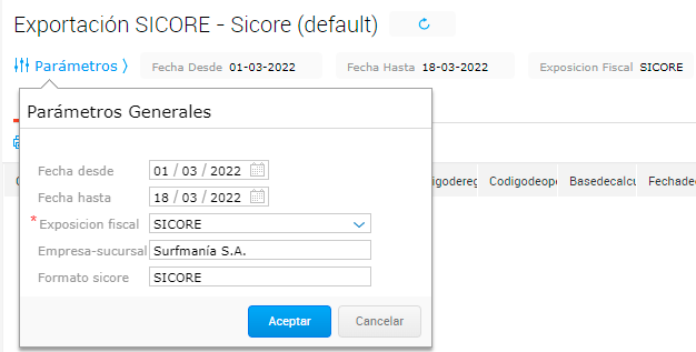Exposición fiscal: es la exposición fiscal correspondiente a utilizar en SICORE.