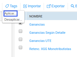 Para aplicar el Tag, simplemente se selecciona la Retención utilizando el Checkbox y luego presionando el botón