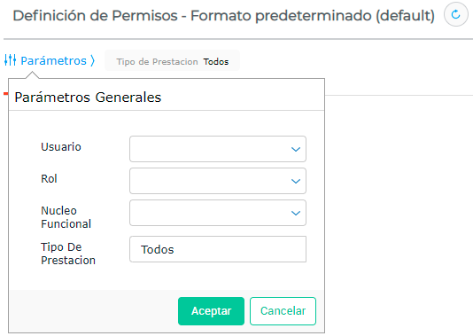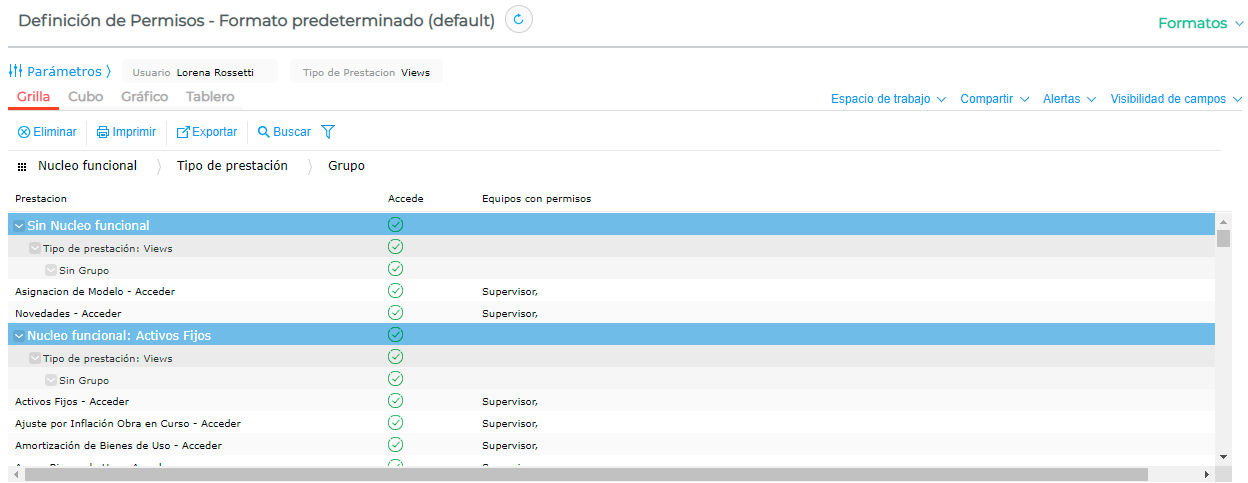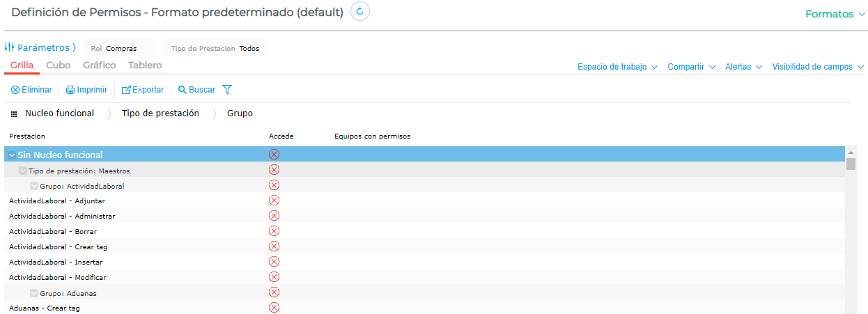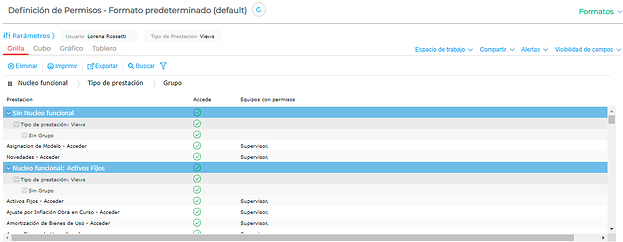 Desde esta opción se habilita en otra pestaña del navegador la grilla de definición de permisos filtrada por el equipo y mostrando todos los tipos de prestaciones.