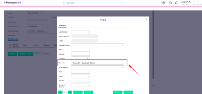 Completar Cabecera: En el formulario de “Nuevo”, localizar el campo Depósito Origen.