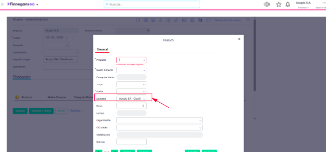 Para Inseminación: Ve a la solapa Producción.