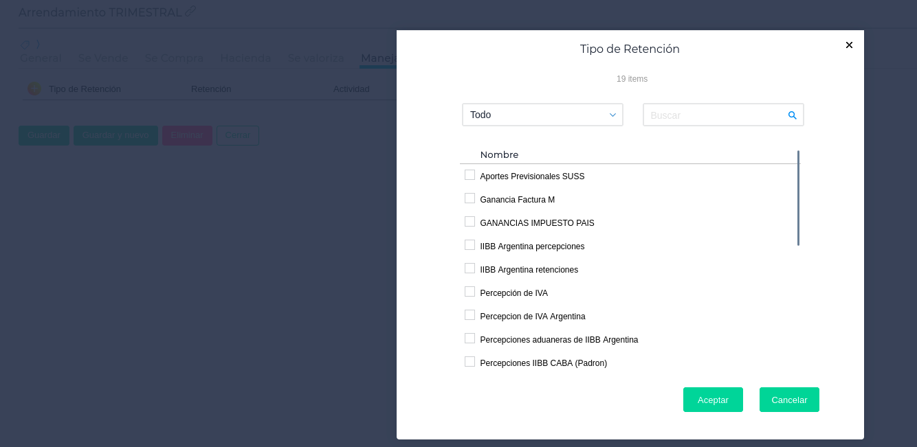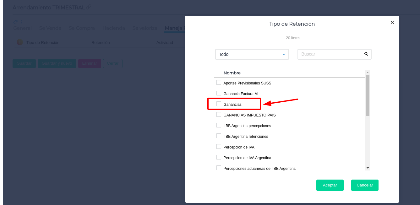 Al intentar configurar la retención aplicable dentro del producto, no aparece disponible el tipo de retención de Ganancias.
