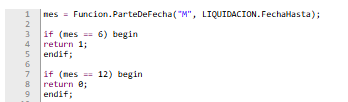 En este caso para la empresa cuyo código es “CAGPRUE” el SAC (línea 3), se liquidará junto con la liqudiación normal (línea 4 a 5). En caso contrario se liquidará el SAC antes de la liquidación normal (línea 7).
