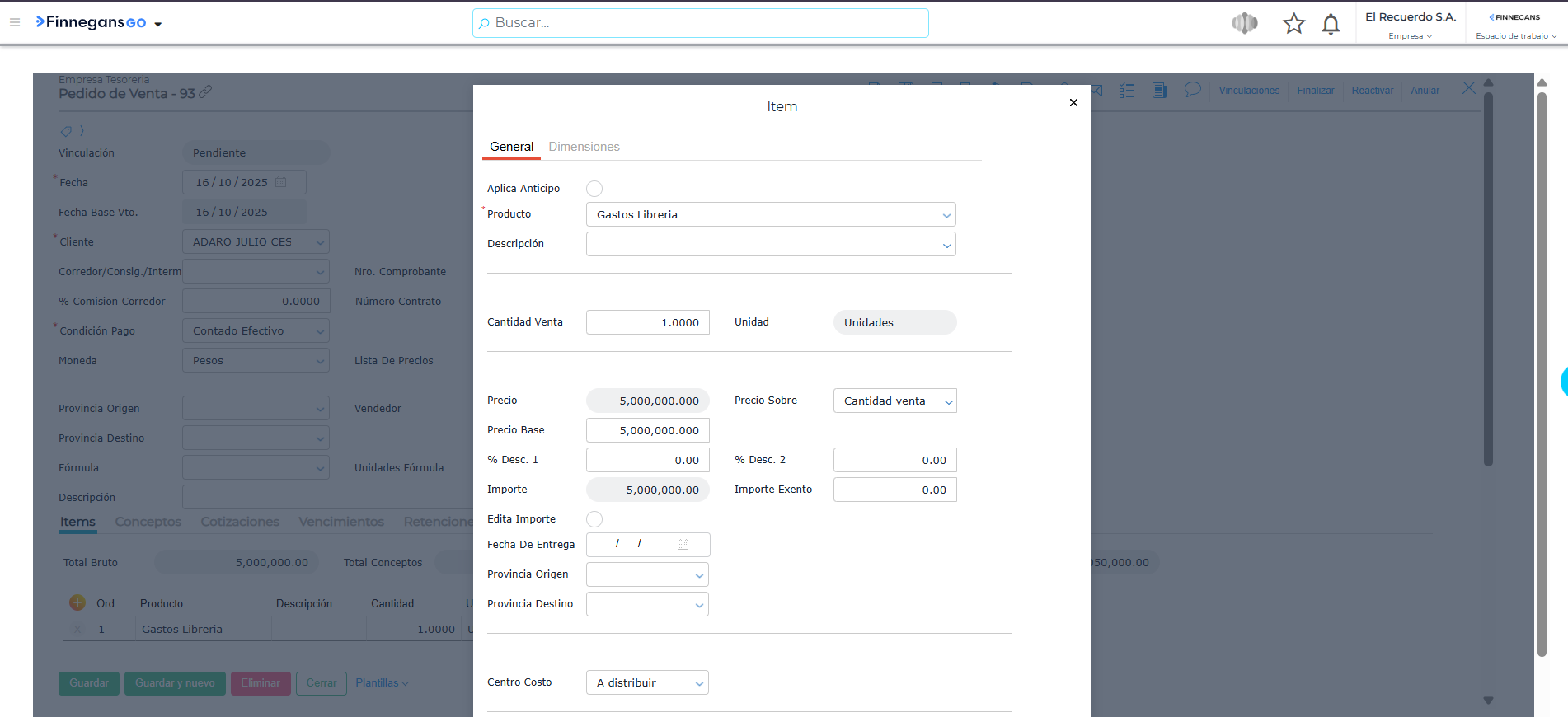 En este ejemplo, visibilizaremos el campo %Desc. del ítem.