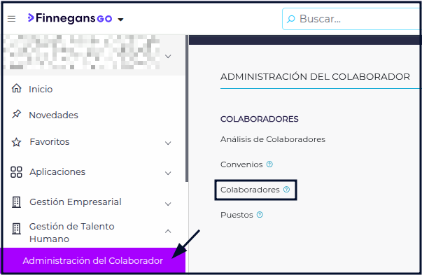 - Ingresar al menú > Gestión del Talento Humano > Administración del Colaborador > Colaboradores.