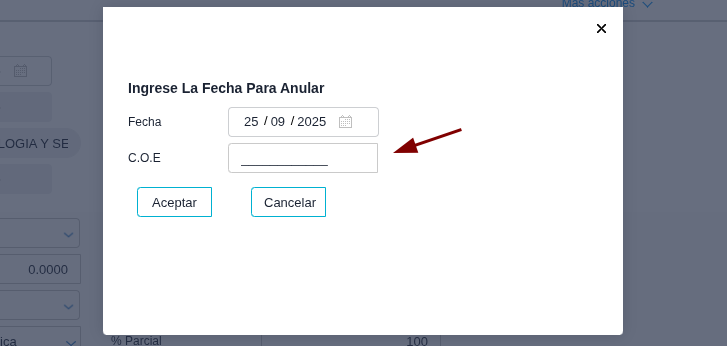 - Al apretar le botón Anular, el sistema nos ofrece dos alternativas: