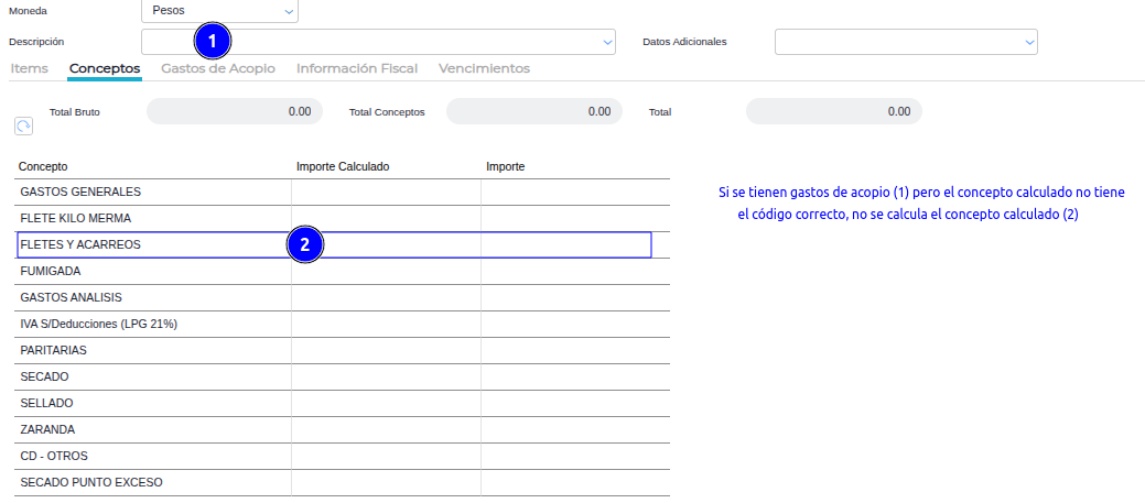¿Cómo configurar los conceptos calculados para que los gastos de los servicios de acopio se calculen en los certificados 1116 a?