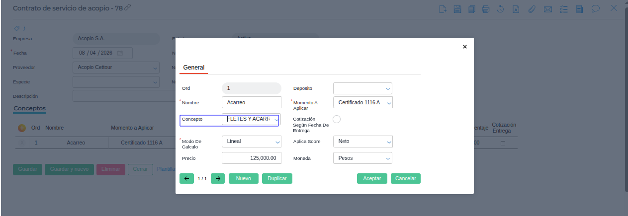 Esto se calcula respecto al concepto que se haya utilizado en el contrato de servicio de acopio: