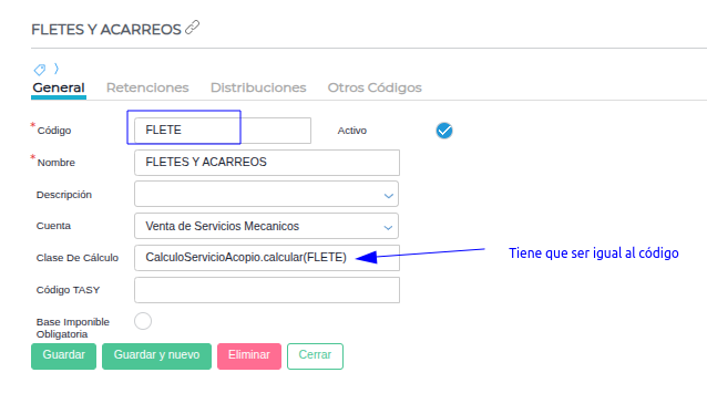 Para que se calculen correctamente los conceptos calculados en los certificados 1116 a, cuando existen gastos de acopio, se debe ingresar al maestro de conceptos calculados y dentro del paréntesis del método de cálculo CalculoServicioAcopio.calcular debe encontrarse el código del concepto calculado en sí.