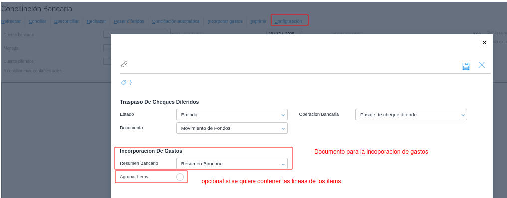 PD: tener en cuenta la solapa Agrupar items, esta permite agrupar los items de incoporacion para no prologar, si es necesario, la carga del resumen.