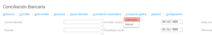 Funcionamiento: Esta modalidad sigue una lógica y pasos muy similares a la conciliación automática por Excel, con la diferencia de que aquí el objetivo es configurar la incorporación de gastos para que sirva de referencia automática.