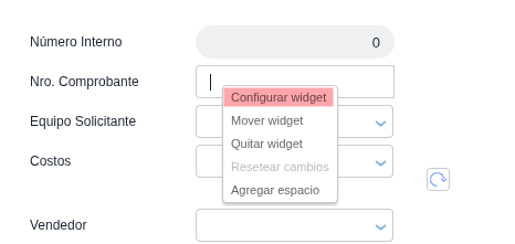 Hacer clic derecho sobre el campo (widget) específico a modificar.