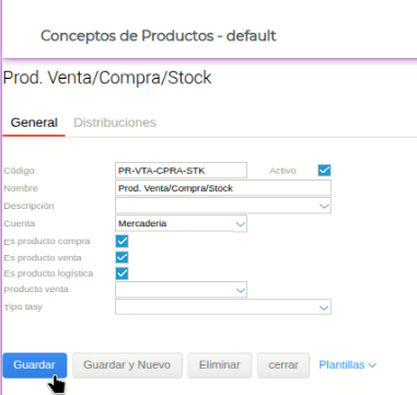 El concepto que se utiliza es el que tiene configurado el producto, en este caso, es Prod. Venta/Compra/Stock